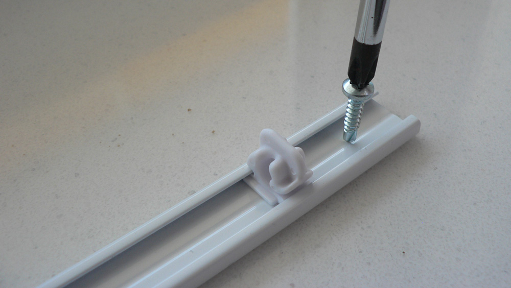 Potem ko so nosilni profili pravilno montirani, mrežo obesimo nanj ter odrežemo višek.